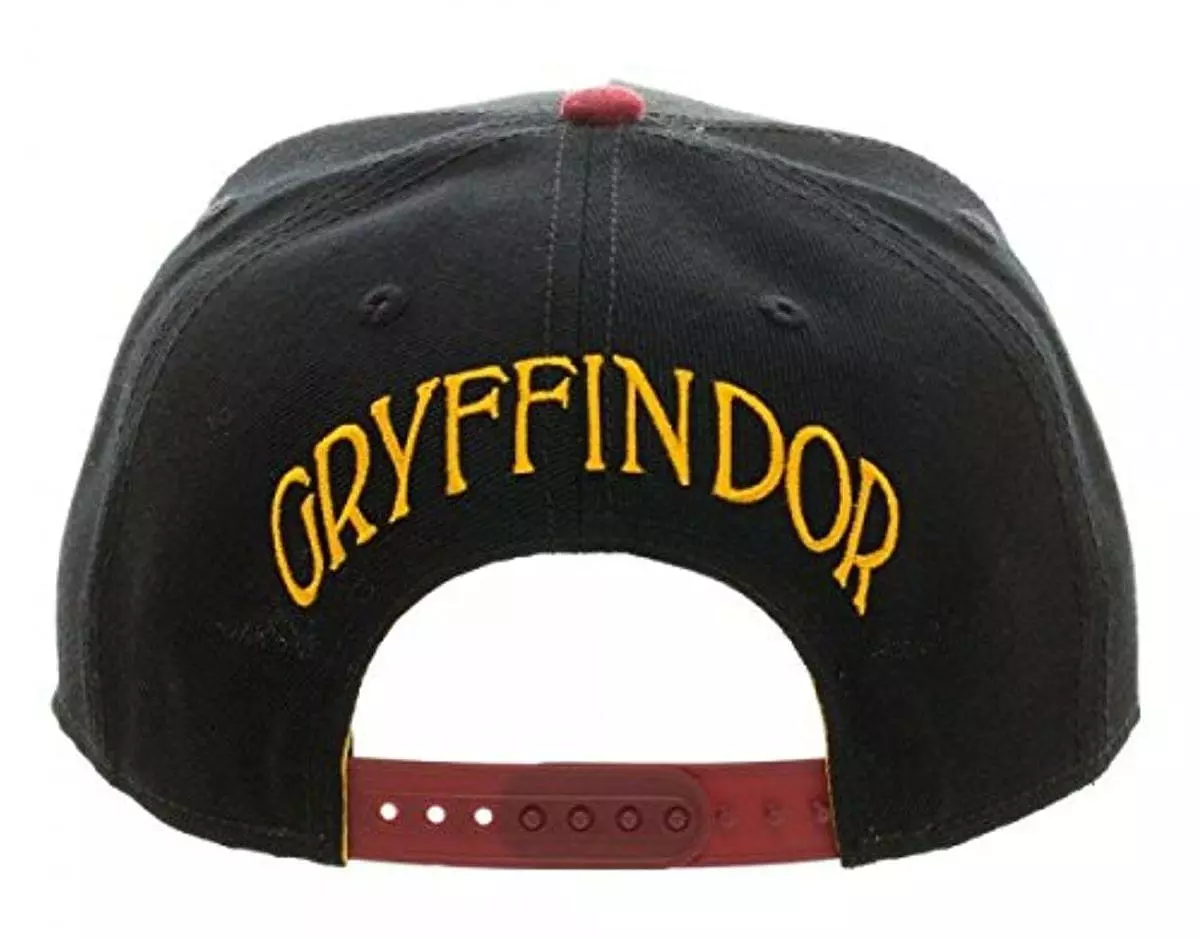 Show off your favorite Harry Potter house of wizardry with this officially licensed snapback hat. Black and red hat features a 3D embroidered Gryffindor crest on the front and house name on the back. Made of 85% Acrylic, 15% Wool, this snapback hat is adjustable: one size fits most.