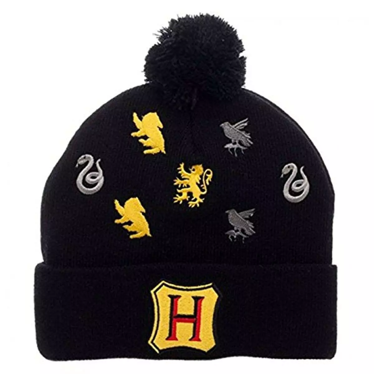 Wear your love of the wizarding world of Harry Potter with this stylish pom beanie! Hat features embroidered house logos and Hogwarts crest logo patch. 100% Acrylic beanie is one size fits most.