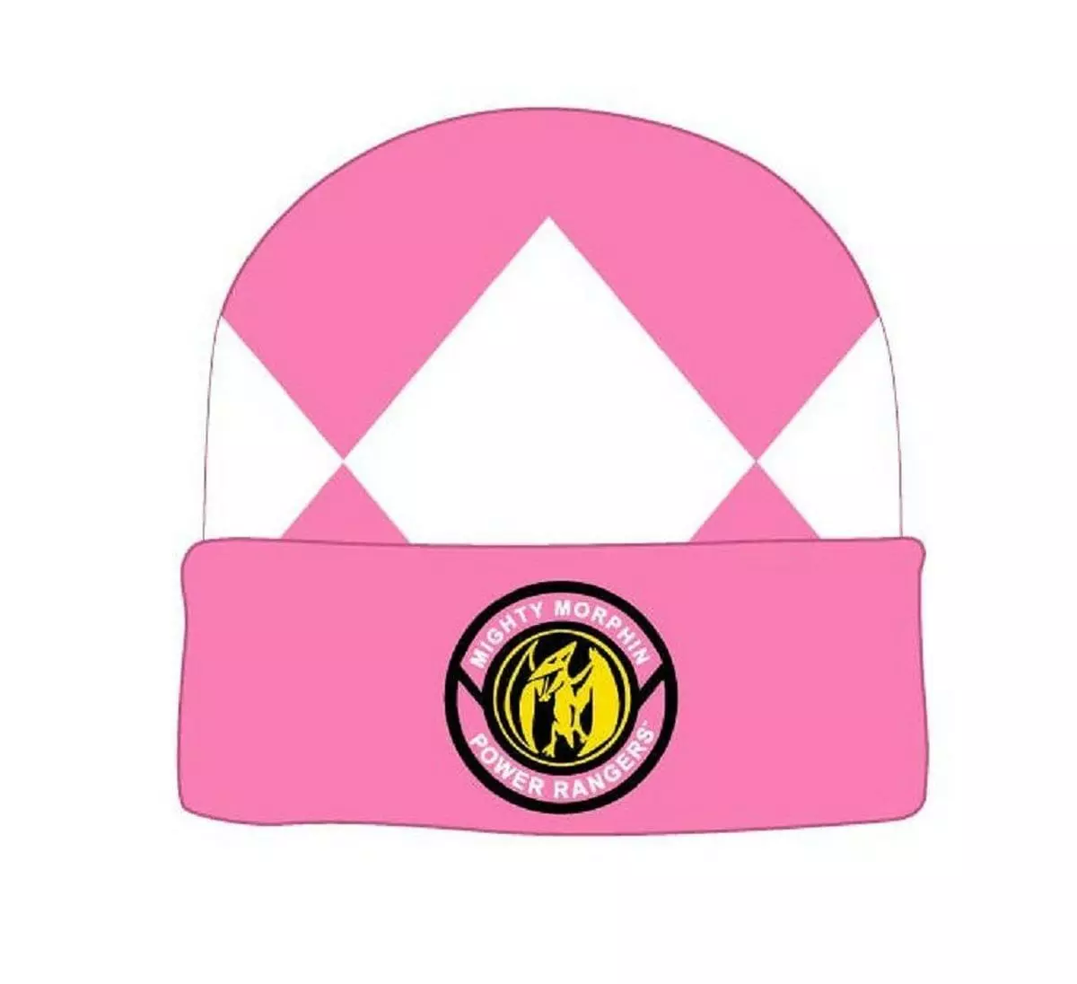 It’s Morphin Time! Sport your love of the Mighty Morphin Power Rangers with this awesome themed beanie. With the Pink Ranger’s Zord Logo front and center, this comfortable knit hat features a cool pink and white checkered pattern. One size fits most adult heads.