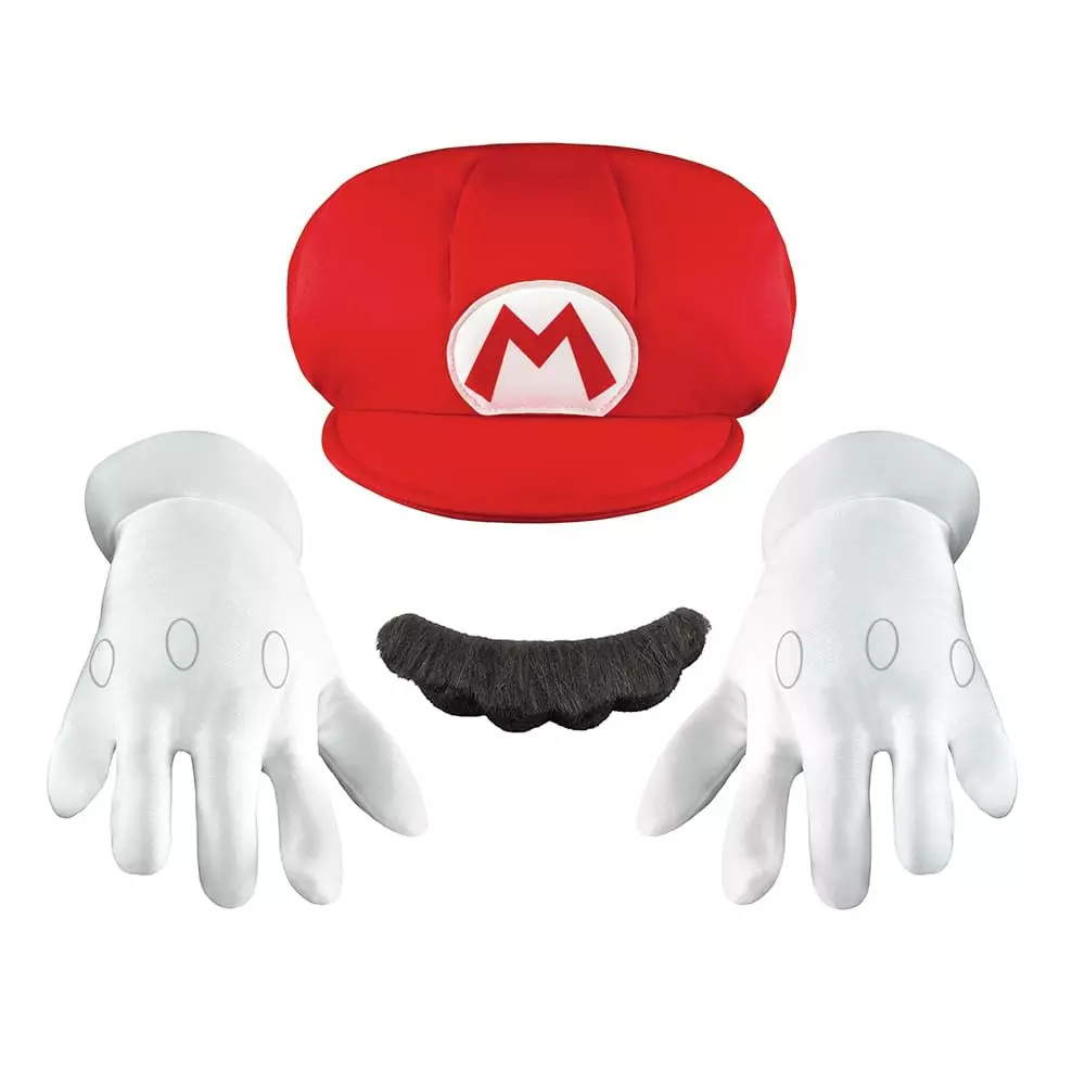 Accentuate any child’s Mario costume with this officially licensed costume kit featuring a character hat, gloves, and faux adhesive mustache!
