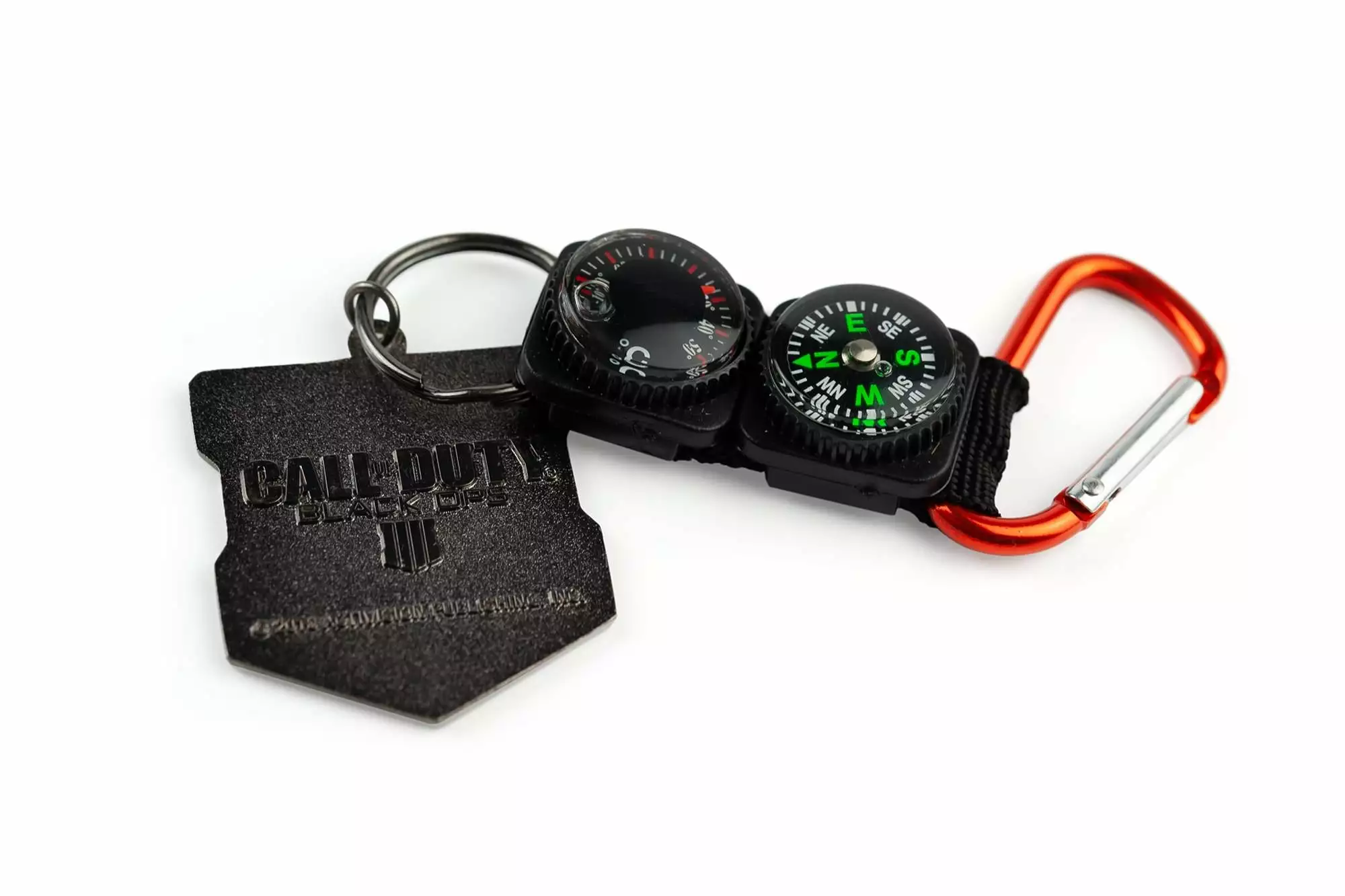 In Call of Duty: Black Ops 4, your primary objective is to survive. This Black Ops 4 branded survival keychain is here to help you accomplish just that. Keep this handy keychain attached to your survival gear or backpack at all times using the included carabiner clip. Fans of the series will enjoy the game’s logo attached at the bottom of the keychain along with a temperature gauge and compass – key survival components!