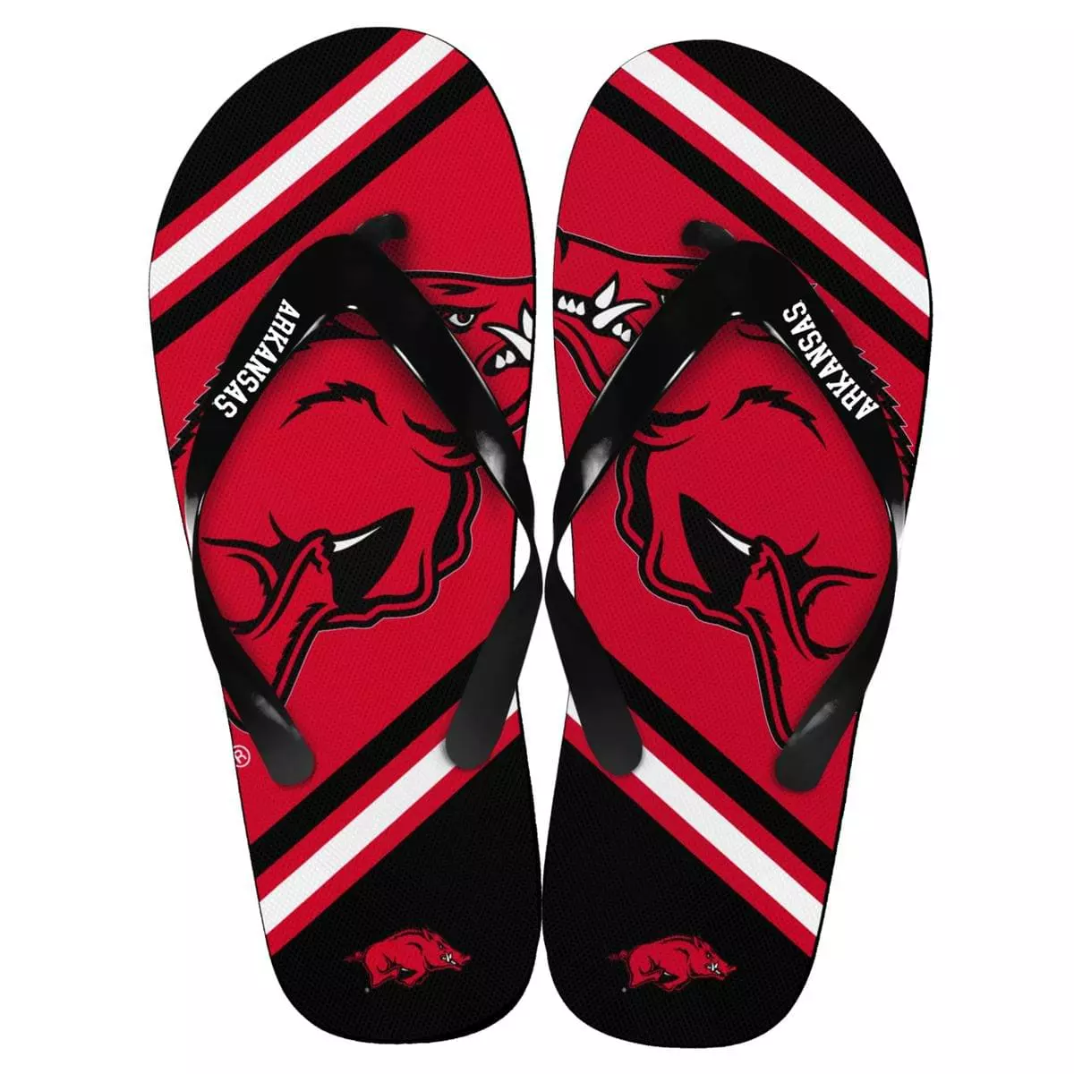 Kick up your heels and show some team spirit! Enjoy game day, or any day, in these Arkansas Razorbacks Unisex Big Logo Flip Flops.