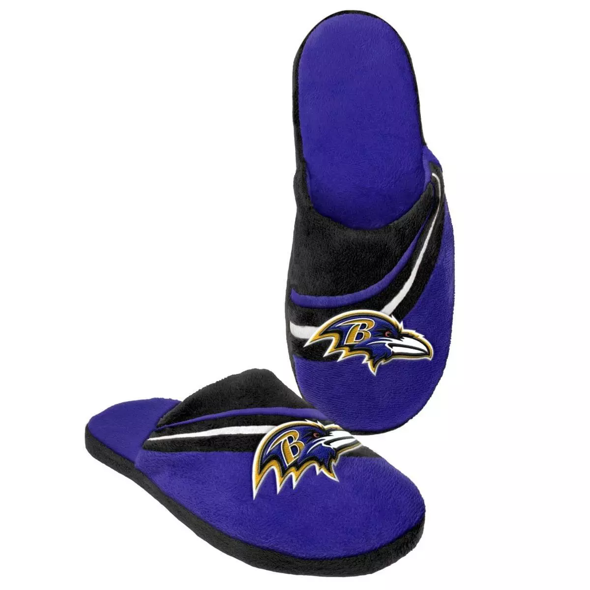 Are you ready to kick back and watch some football? Show your Ravens pride while adding a little spring to your step in these comfy Baltimore Ravens 2013 Big Logo Slide Slippers.