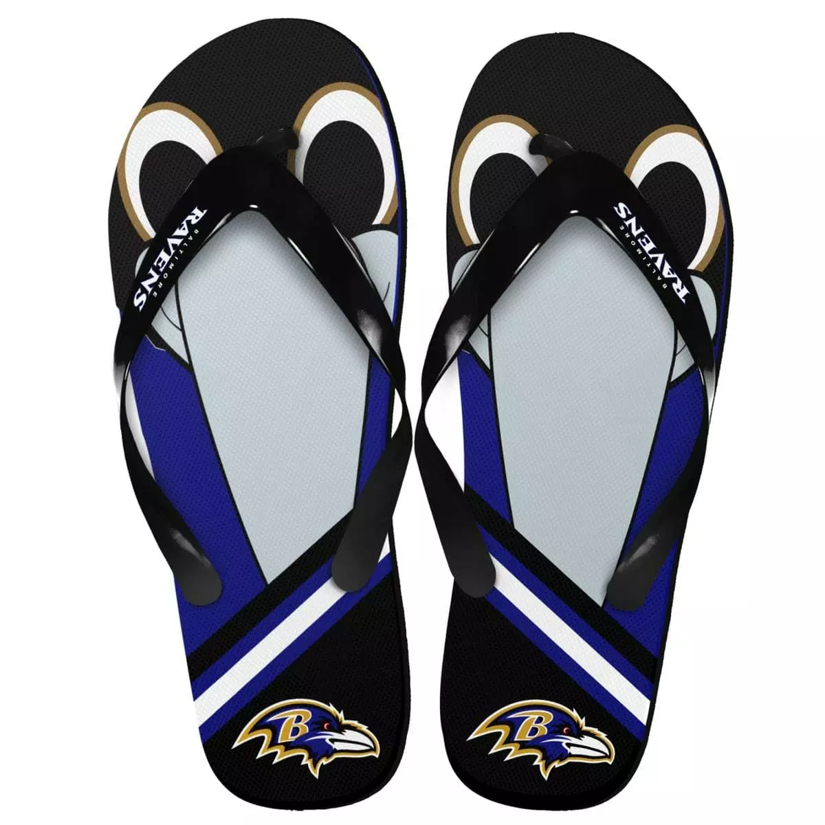 Show your love for the Baltimore Ravens with a splash of team colors! Wear the fun-looking Baltimore Ravens NFL Youth Mascot Flip Flops to the game, beach or any day.