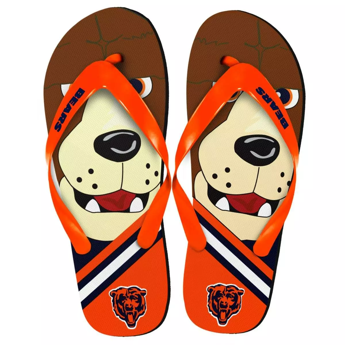 Show your love for the Chicago Bears with a splash of team colors! Wear the fun-looking Chicago Bers NFL Youth Mascot Flip Flops to the game, beach or any day.