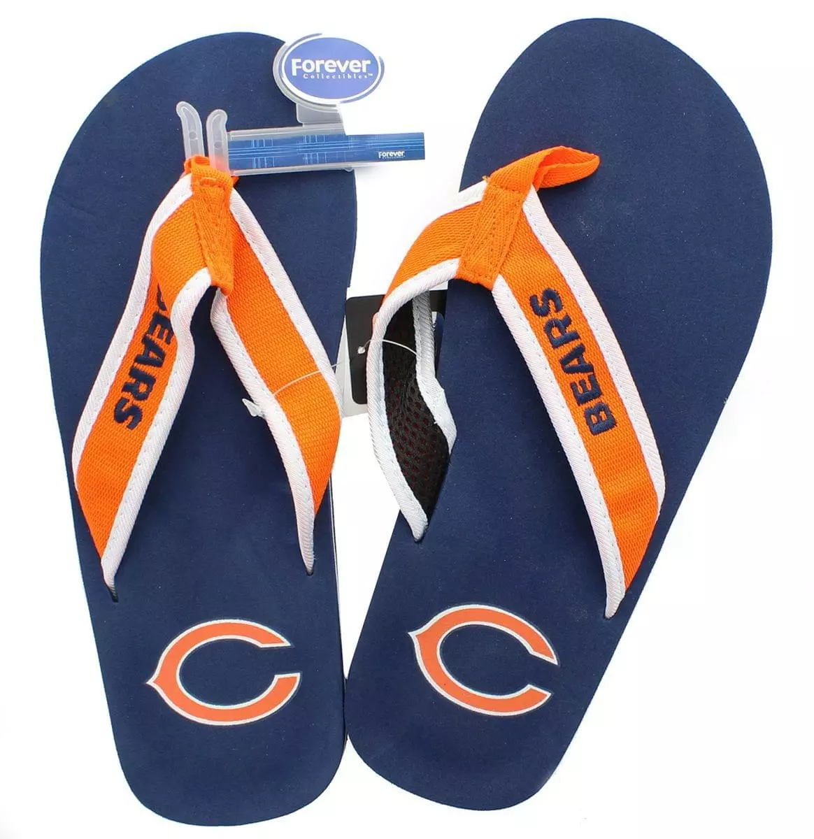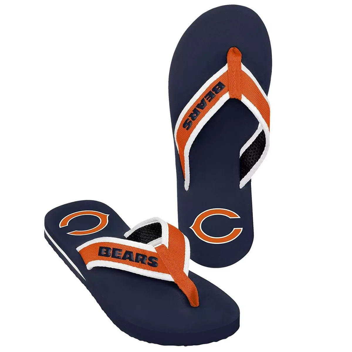 Flip the channel to your favorite sports team and show some team spirit! Kick up your heels and enjoy game day, or any day, in these Chicago Bears NFL Mens Team Color Contour Flip Flops.