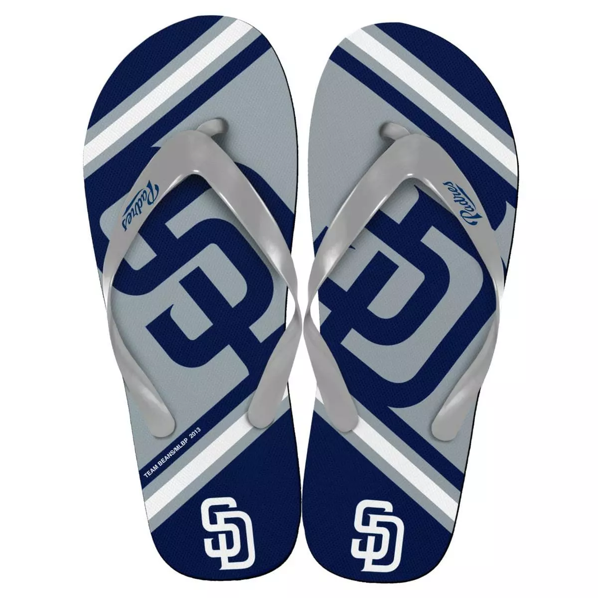 Kick up your heels and show some team spirit! Enjoy game day, or any day, in these San Diego Padres MLB Unisex Big Logo Flip Flops.