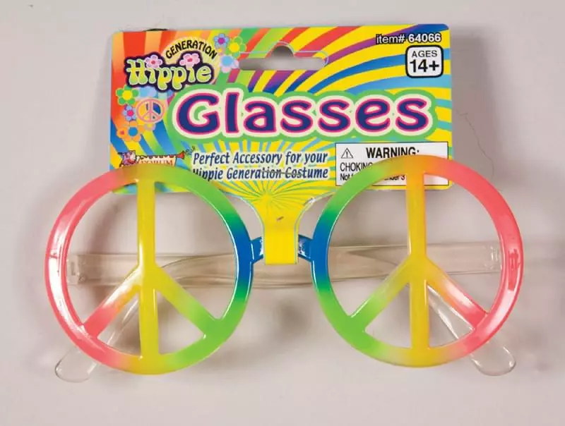 Complete your groovy look. Make peace, not war, in our fun rainbow colored peace sign glasses! Made of translucent plastic, these glasses are a fun addition to your hippie costume.