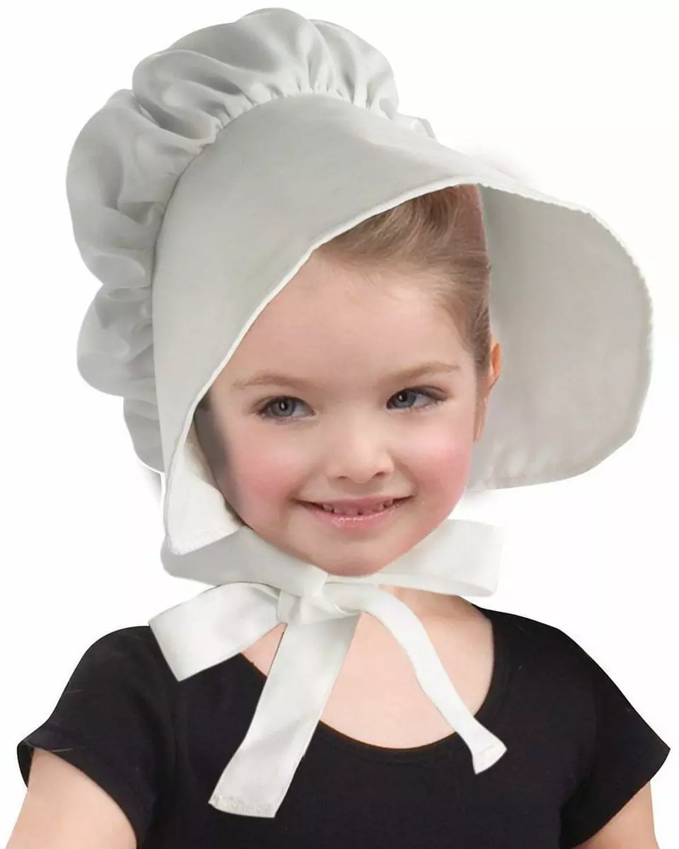Celebrate Thanksgiving with this adorable Colonial White Bonnet! Perfect for dress-up or the school play, this festive pilgrim’s headpiece features a chin tie closure. Child sizes.
