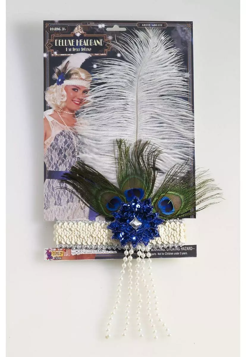 Top off our fancy flapper costume with the White Peacock Flapper Headband. This white, stretch headband pairs perfectly with any sparkly flapper costume that you could imagine.
