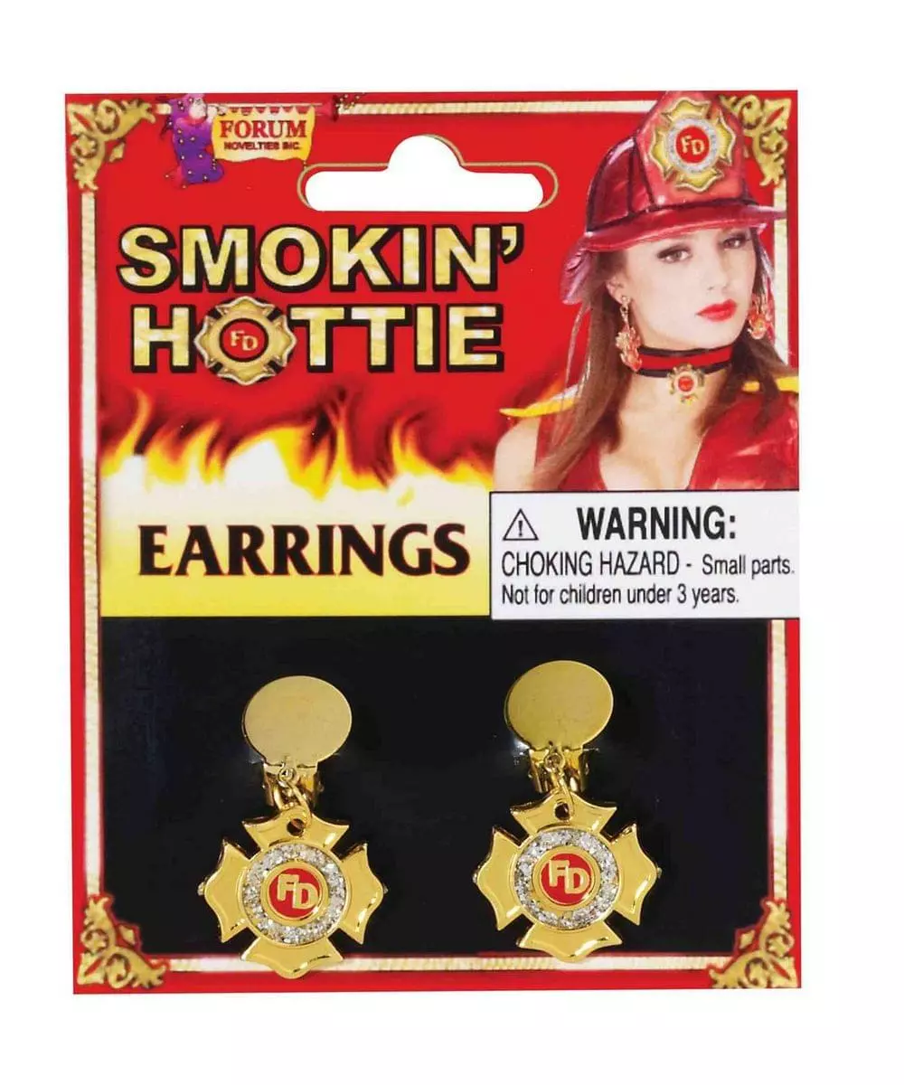 Is she putting out flames or stoking them up wearing the Smokin’ Hottie Gold Fireman Earrings?
