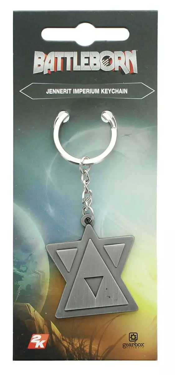 Show off your love of the video game Battleborn with this stylish metal keychain! Keychain shows the Jennerit Empire logo in a brushed metal finish. Pendant comes with a sturdy o-ring chain attachment for your keys. Officially licensed. Sure to make a great gift to any Battleborn fan!