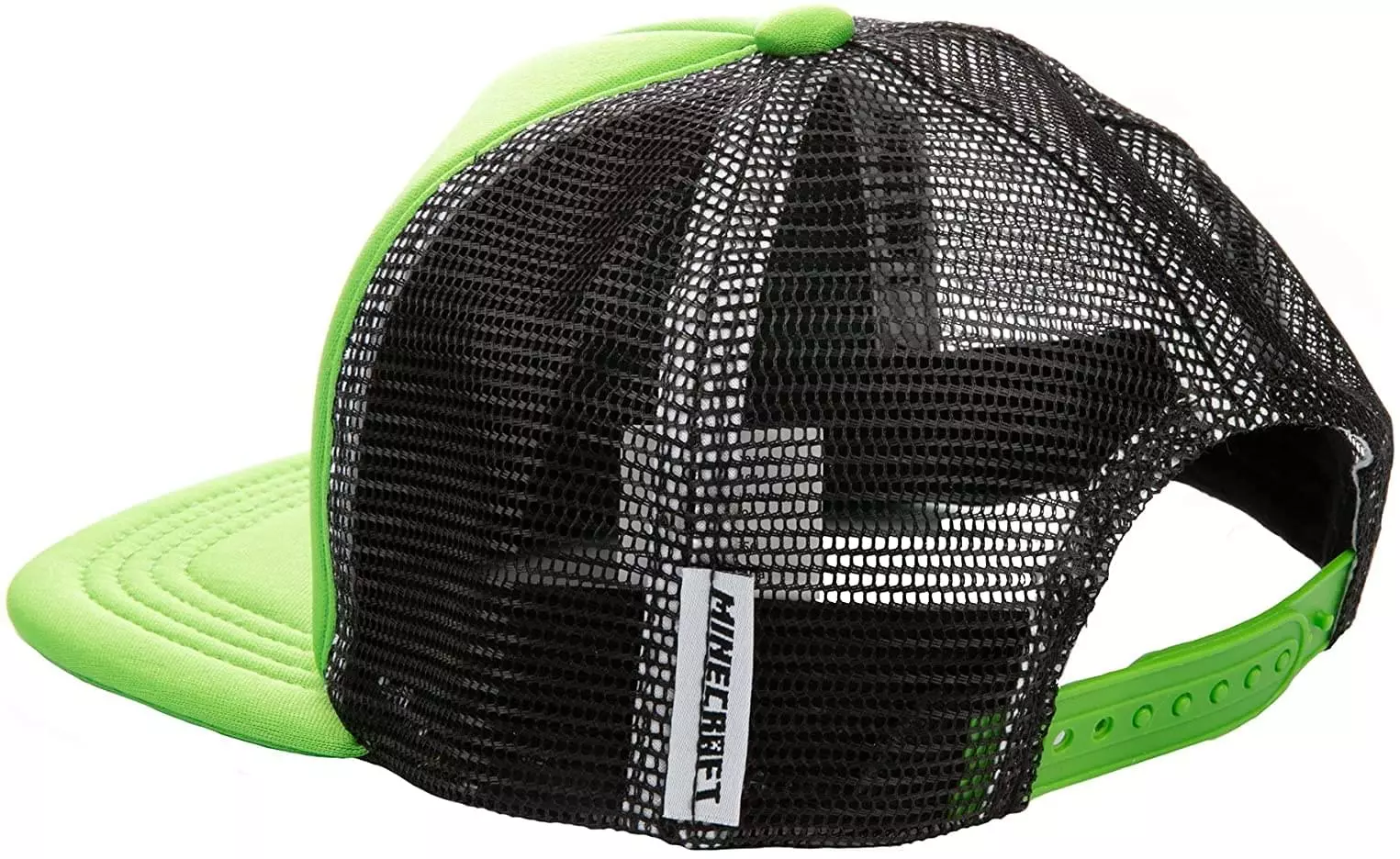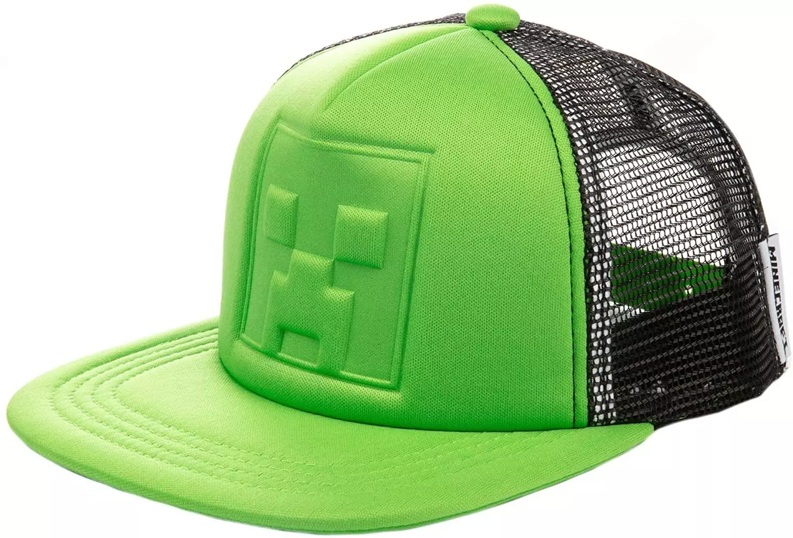 Wear your love of Minecraft with this fun snapback hat! Black 100% polyester hat features a green front panel and matching brim; plus a debossed Creeper face on front of cap.Standard youth size, circumference measures approximately 21.457 inches (54.5 cm). Officially licensed by Minecraft; designed and created by JINX.