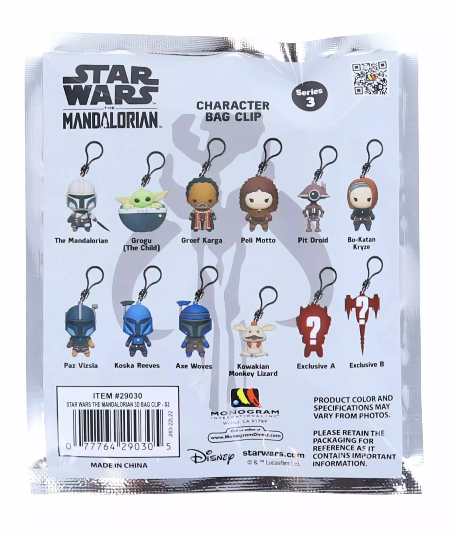 Monogram International Inc. Star Wars The Mandalorian Series 3 3D Foam Bag Clip | 1 Random