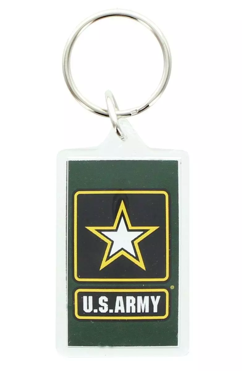 Add some style to your set of keys with this U.S. Army keychain. Double-sided keychain features the U.S. Army logo on one side and the Army symbol on the other. Comes with a handy o-ring attachment to tote your keys.