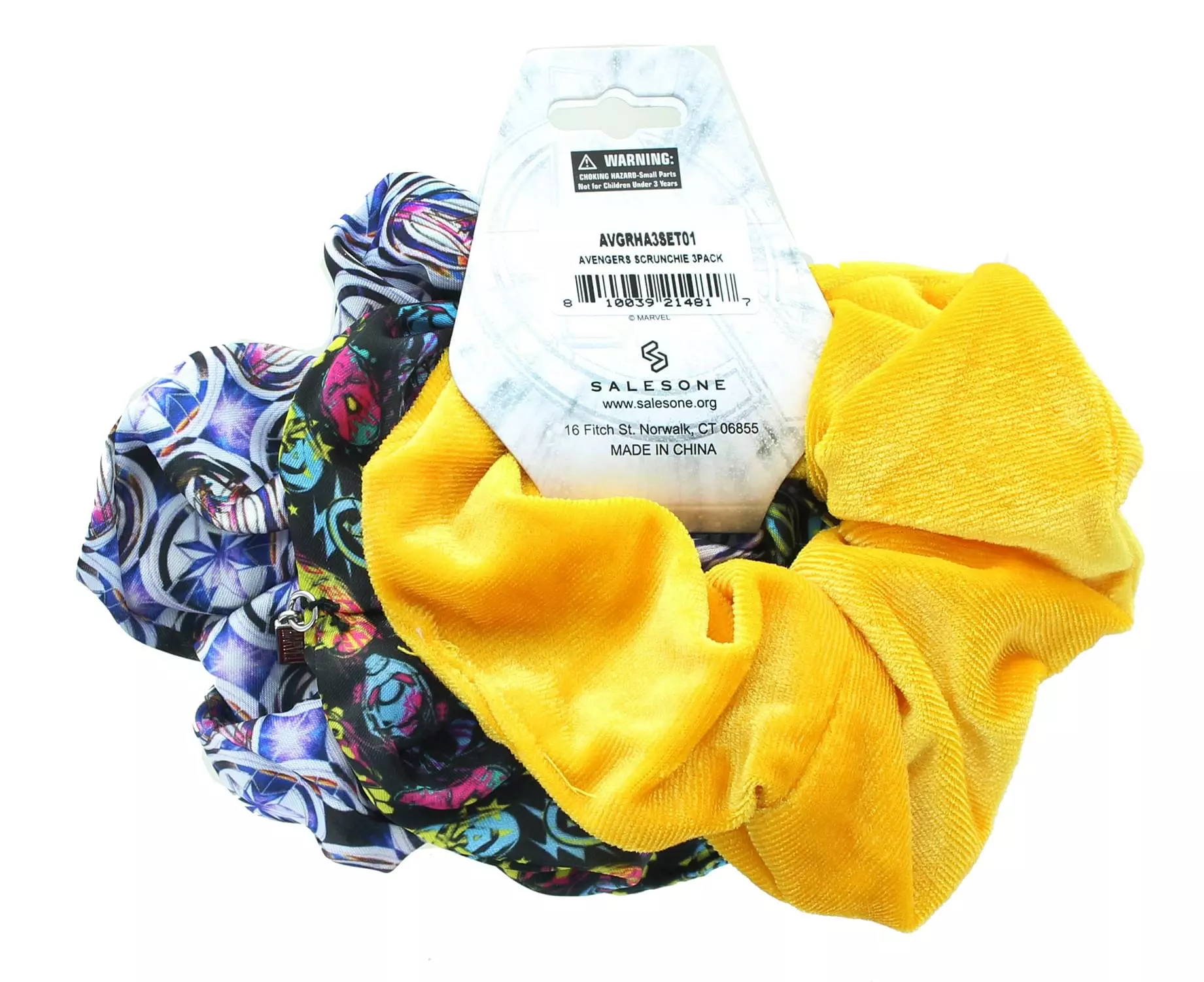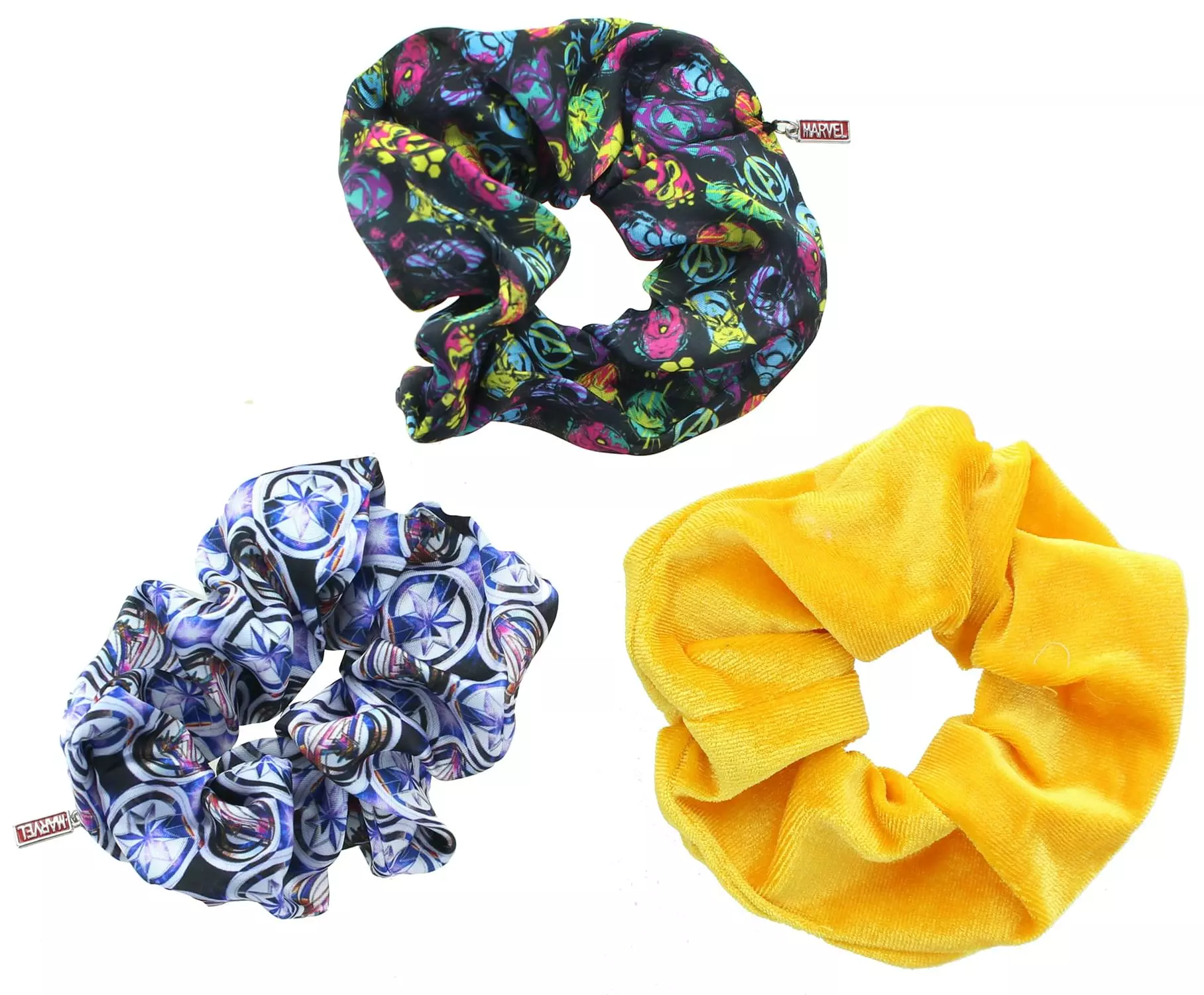 Wear your love of Marvel with this fun hair scrunchie set! Pack includes three (3) colorful hair scrunchies, each with a unique Avengers design. Add some “flair” to your hair, all while flaunting your fandom! Officially licensed.