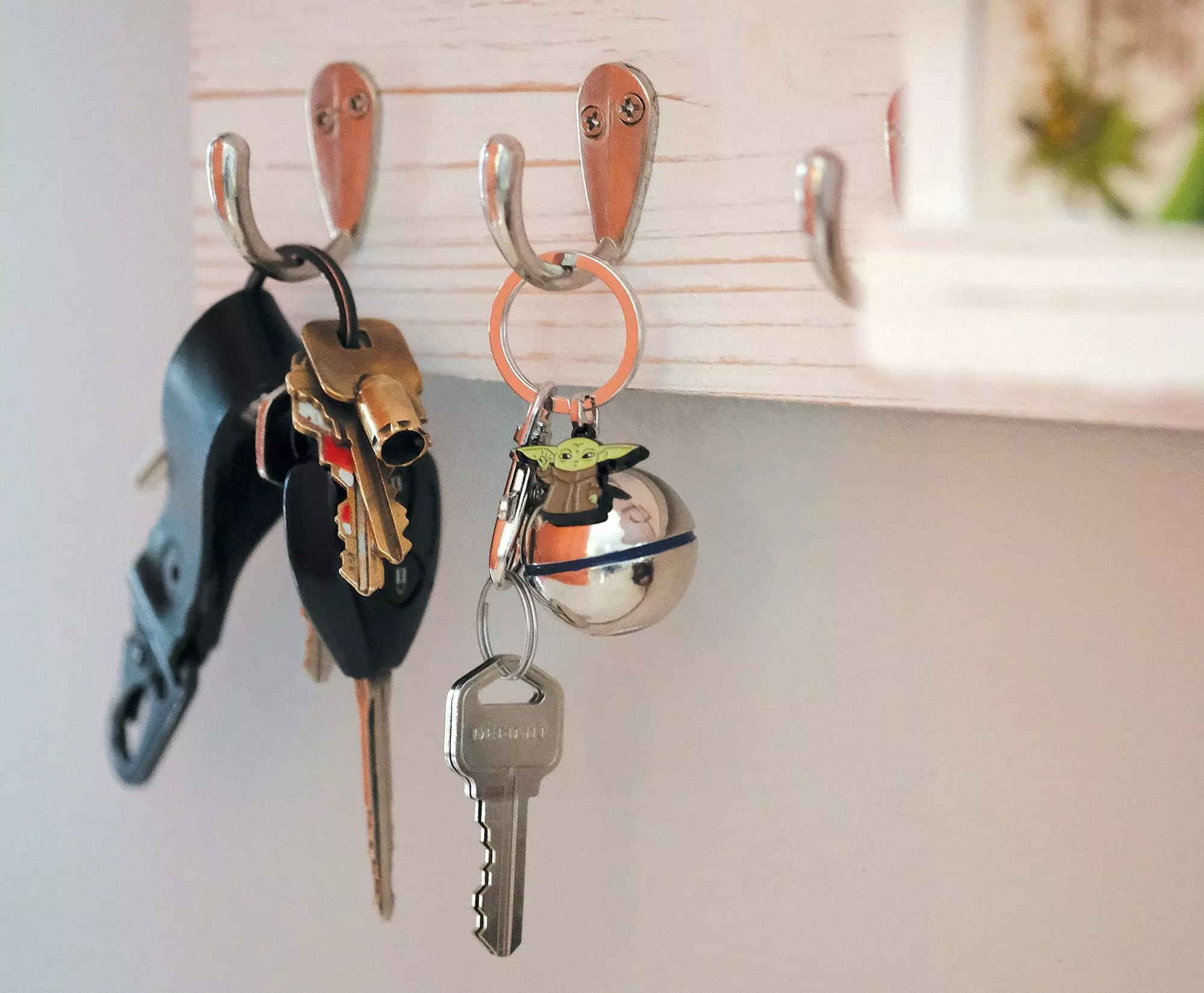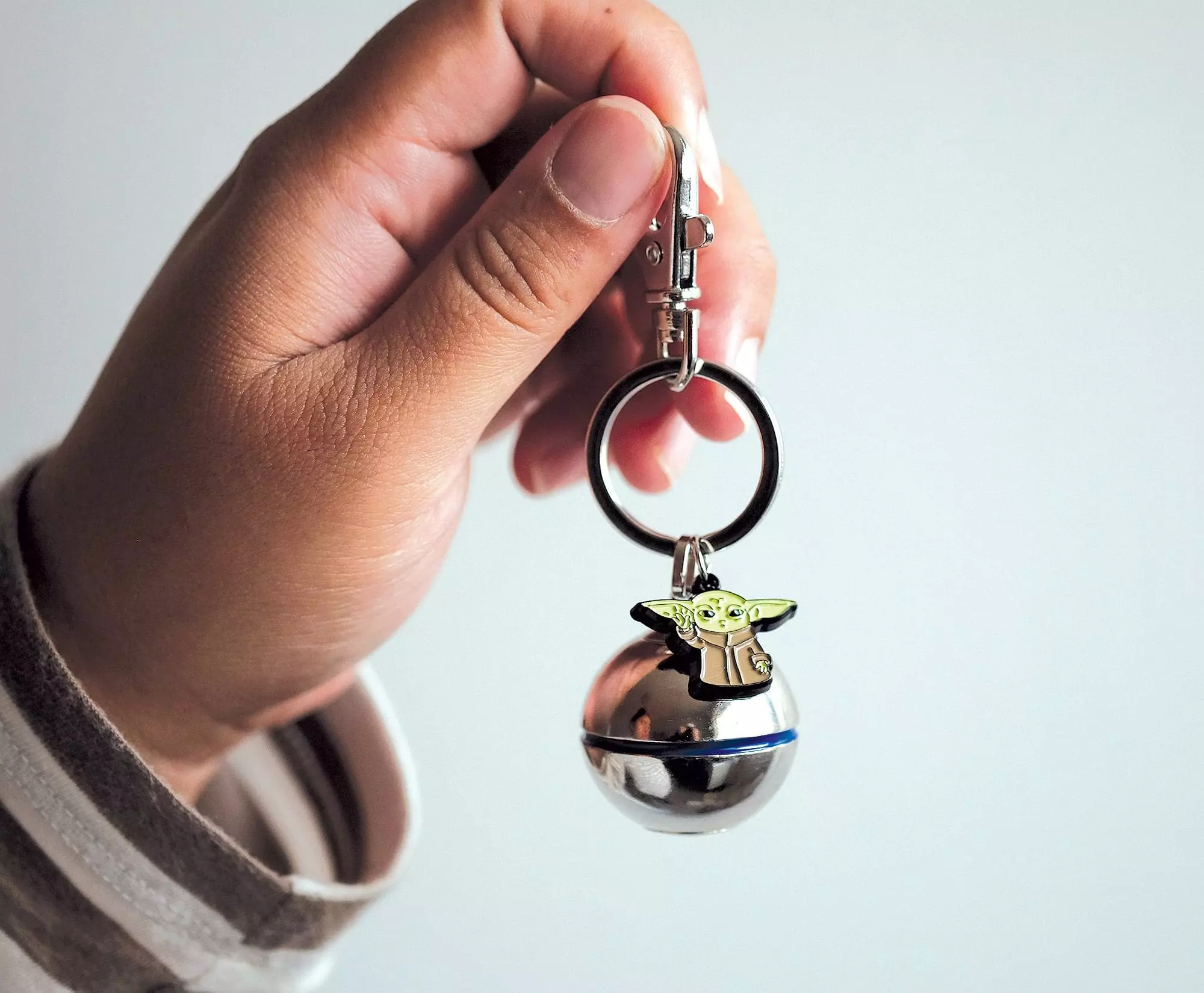 Want to make your next bounty mission even more epic? Tote your keys in style with this exclusive pendant keychain inspired by Star Wars: The Mandalorian. Features the Razor Crest shifter knob and a Grogu pendant charm. Bring home “the asset” right in the safety of your pocket, along with his favorite shiny ball to keep him occupied.
