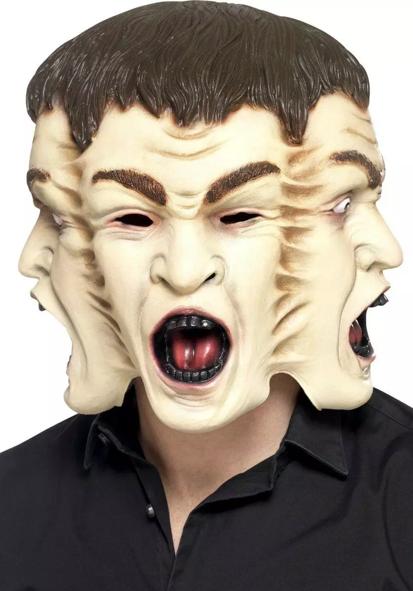 Terrify onlookers with this creepy 3 Face Mask Costume. Highly detailed, the mask features a terrifying multi-face design with screaming expressions and black teeth. Made from top-quality latex material, this mask accessory features a comfortable fit and easy-wear design. This premium latex mask will give you a scary appearance that can be worn to a variety of costume events.