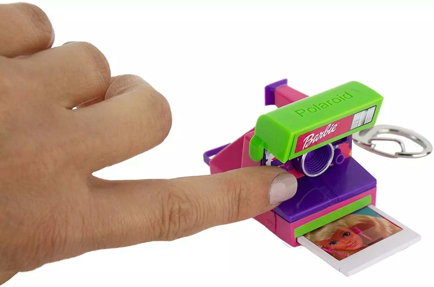 Get ready to say, “cheese” with the World’s Coolest Barbie Polaroid 600! This keychain simulates taking a photograph. Measuring only 1.5 x 2.25 x 1.75 inches, this mini replica of the original Barbie Polaroid 600 camera features a view finder, shutter button, and pop-up flash just like the original! When you press the shutter button, out slides a pretend Barbie polaroid picture with iconic sound effect. Press it back in and do it all over again! It’s the perfect retro gift for Barbie fans of all ages. Recommended for ages 6 and up.