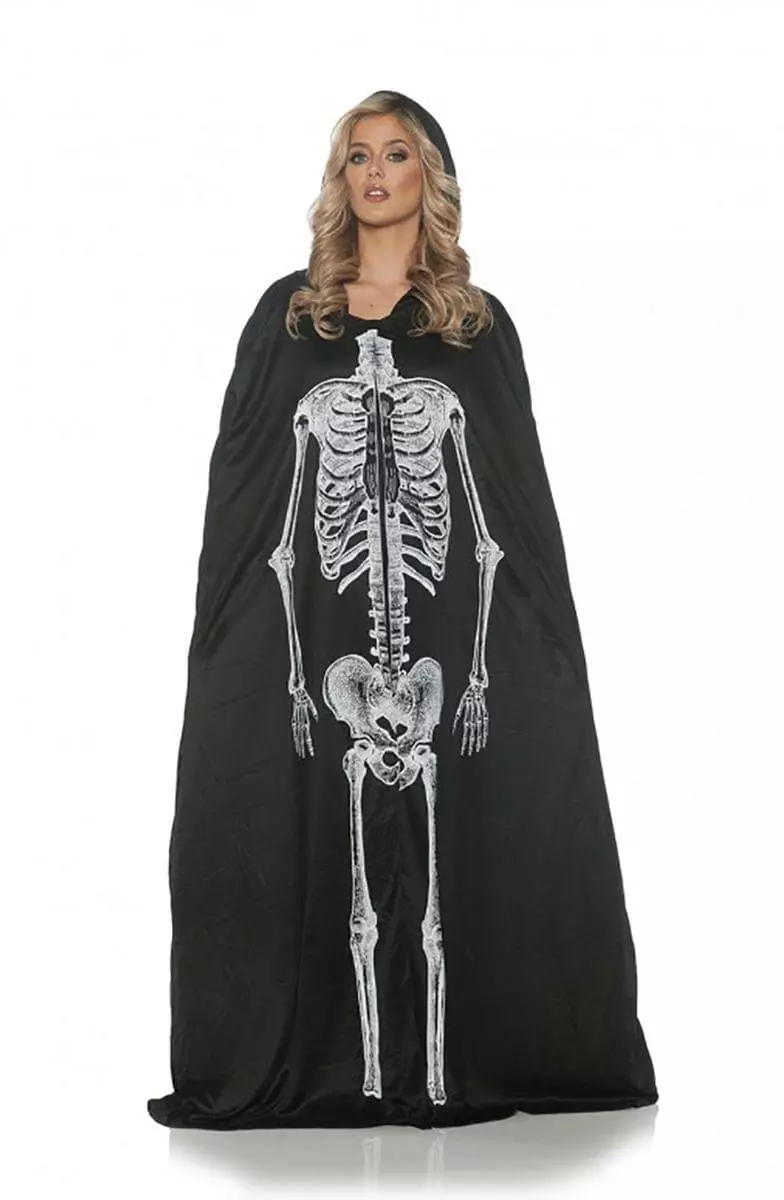 A great idea for a quick costume for any Halloween or Day of the Dead celebration. Black cape with skeleton bone print. Bones are printed on front and back of the cape. Features a hood. Works with a variety of costume looks and themes. Comes brand new in manufacturer packaging.